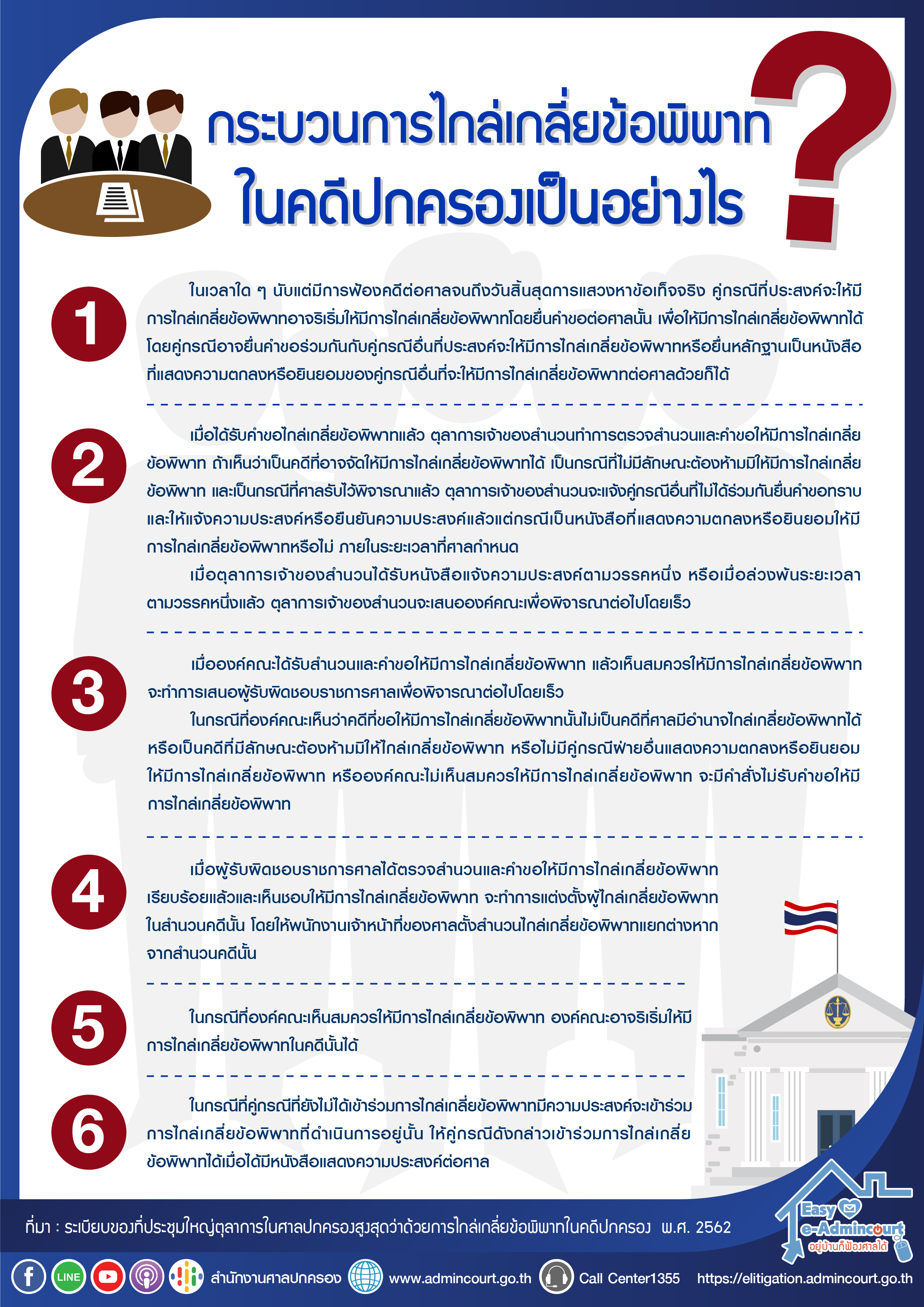 Infographic กระบวนการไกล่เกลี่ยข้อพิพาทในคดีปกครองเป็นอย่างไร