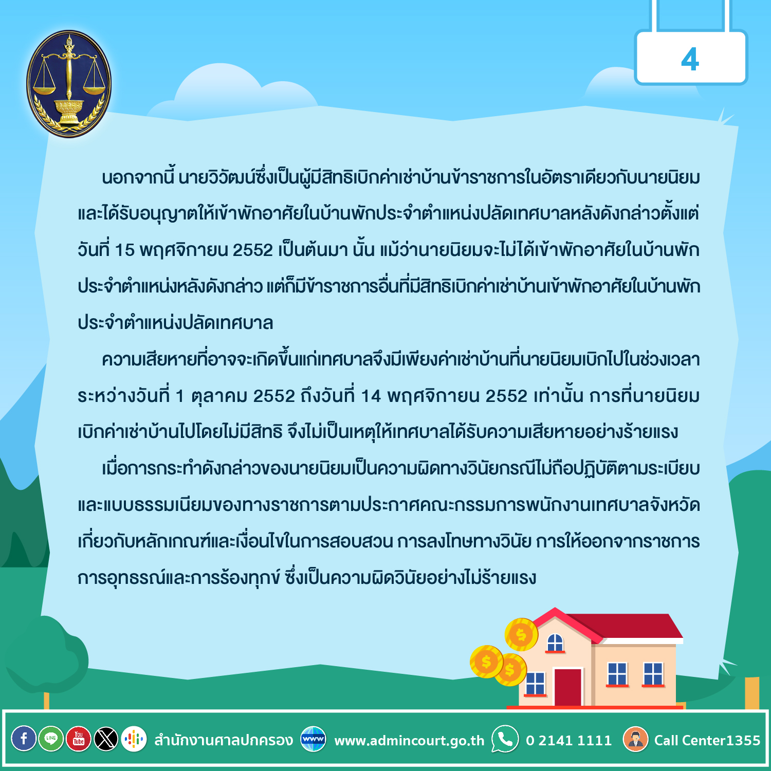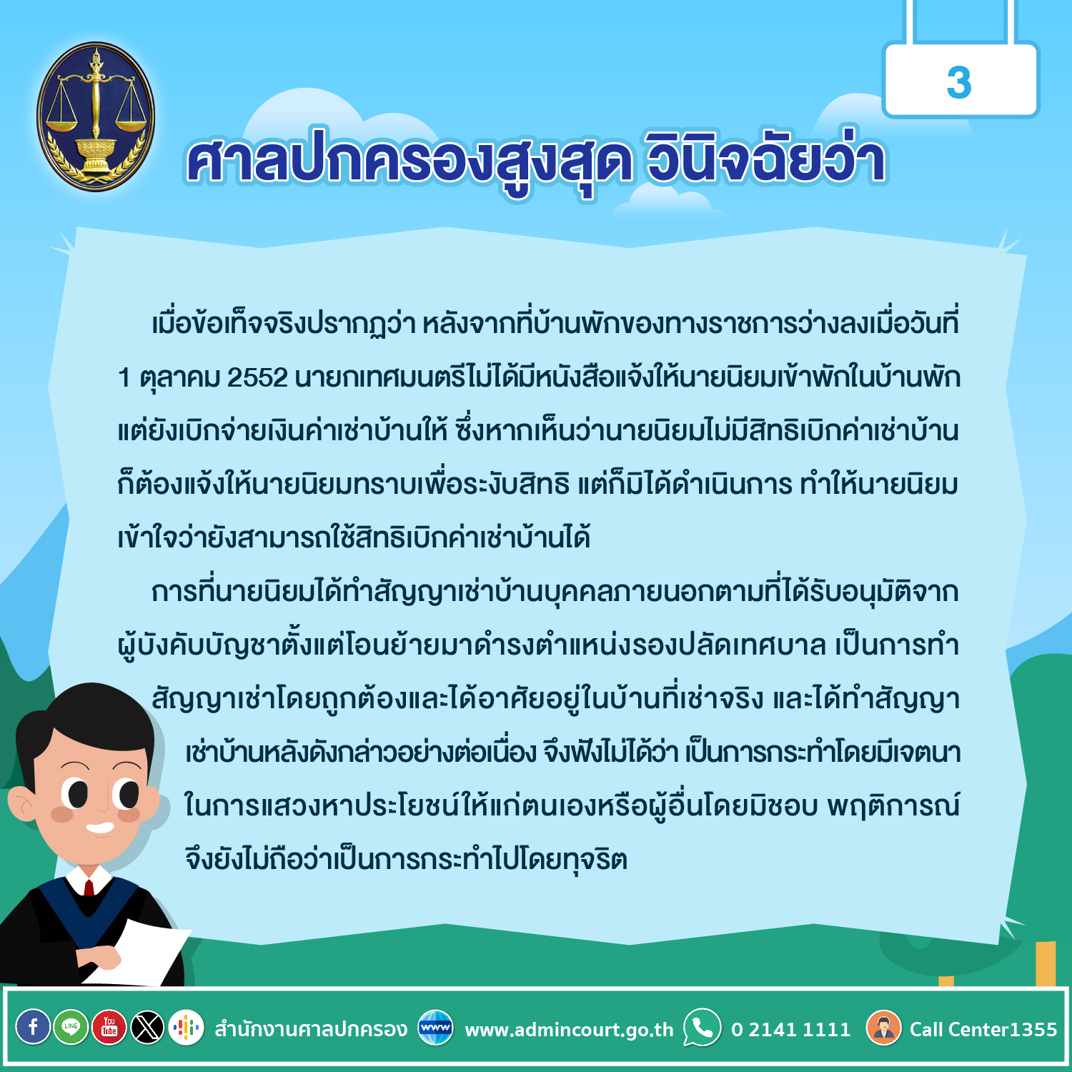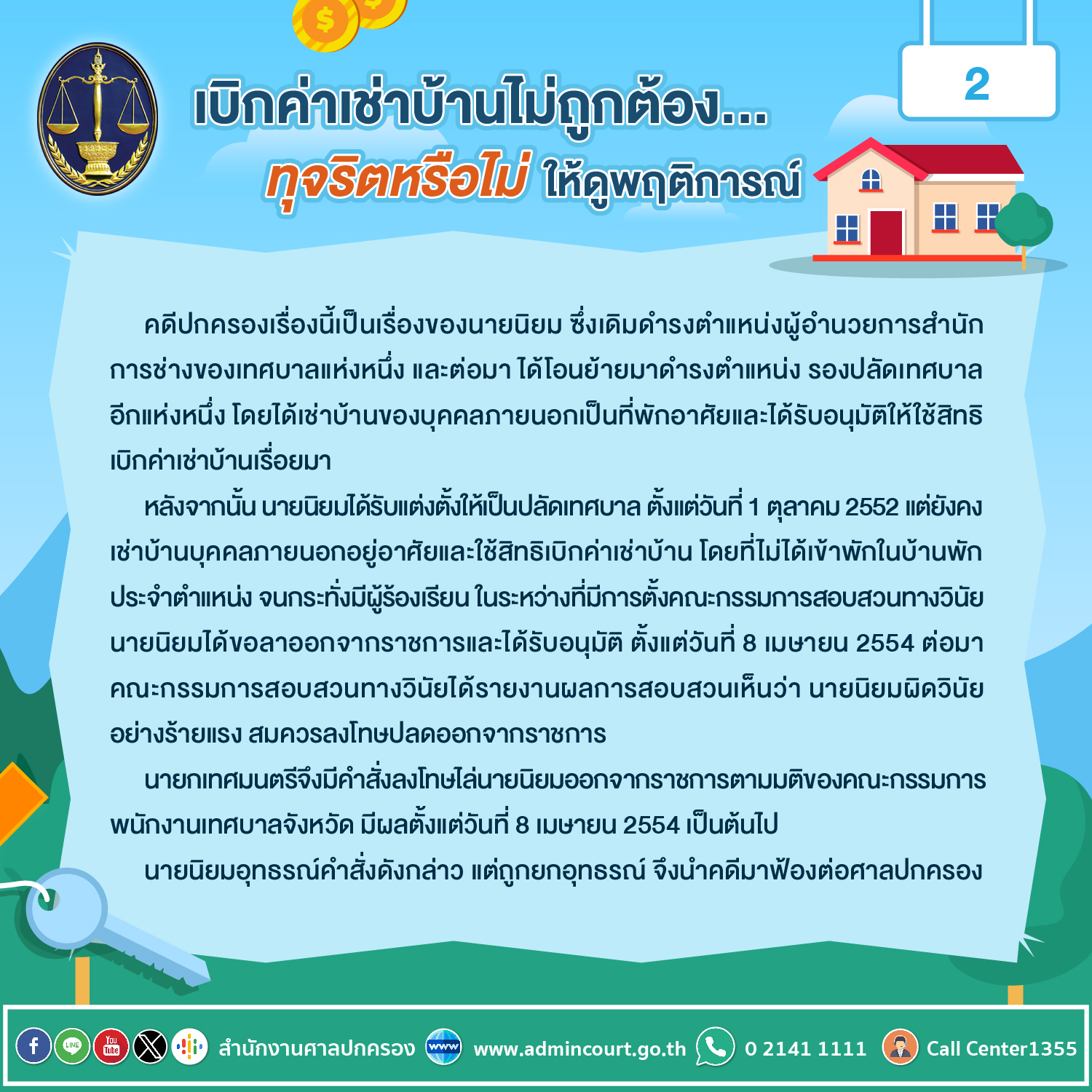 Infographic คดีปกครองที่น่าสนใจ ตอนที่ 74 เบิกค่าเช่าบ้านไม่ถูกต้อง...ทุจริตหรือไม่ ให้ดูพฤติการณ์