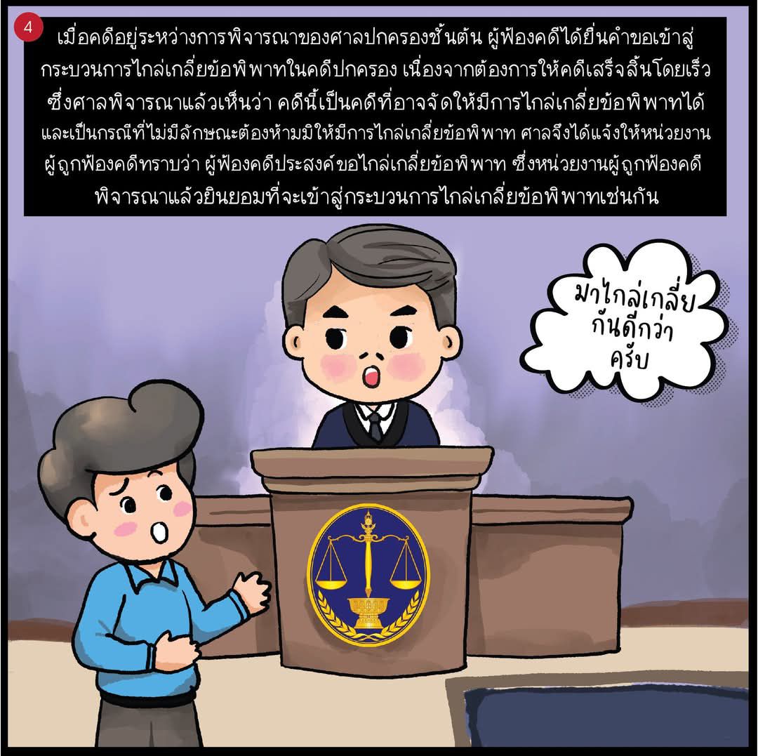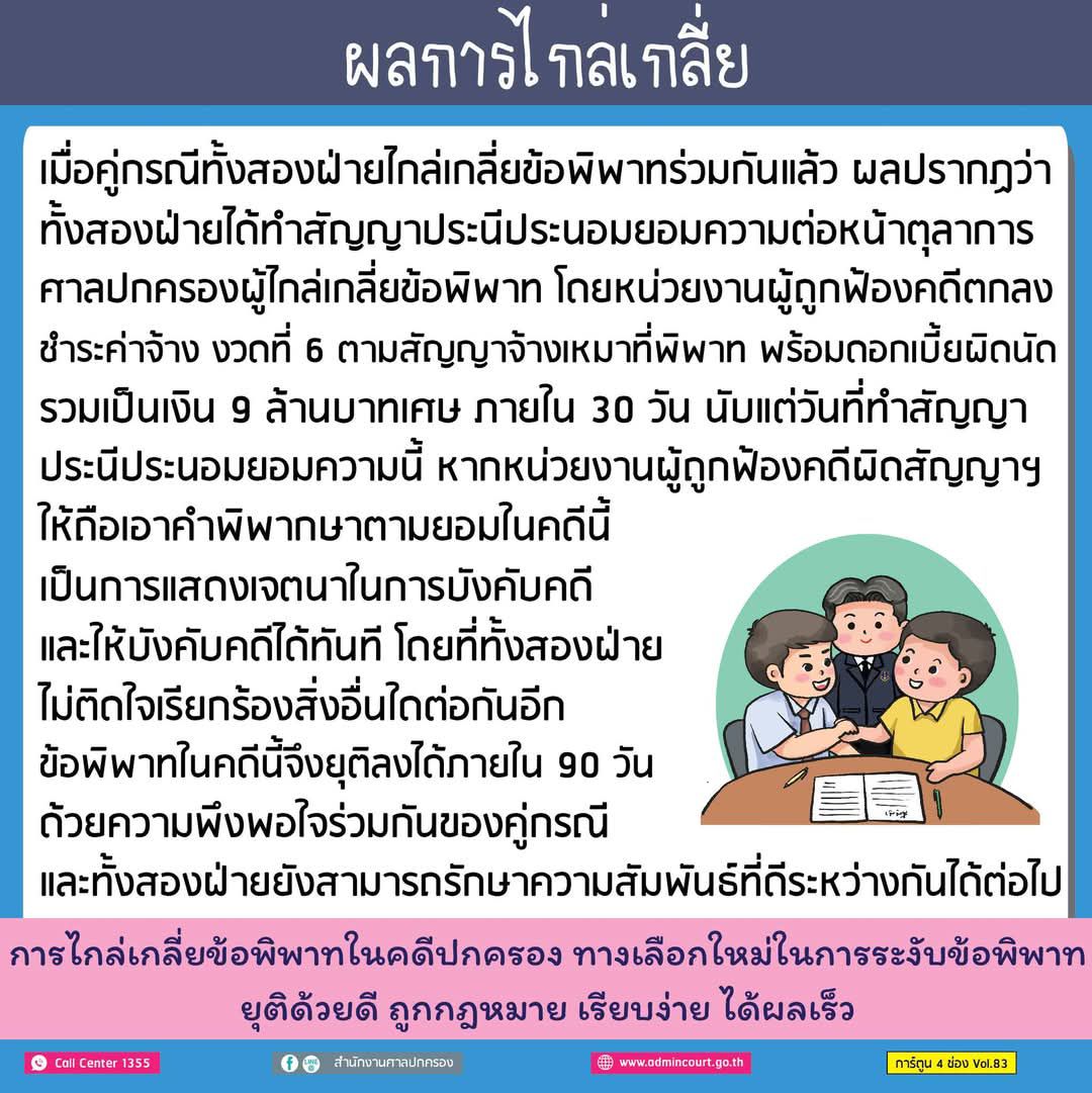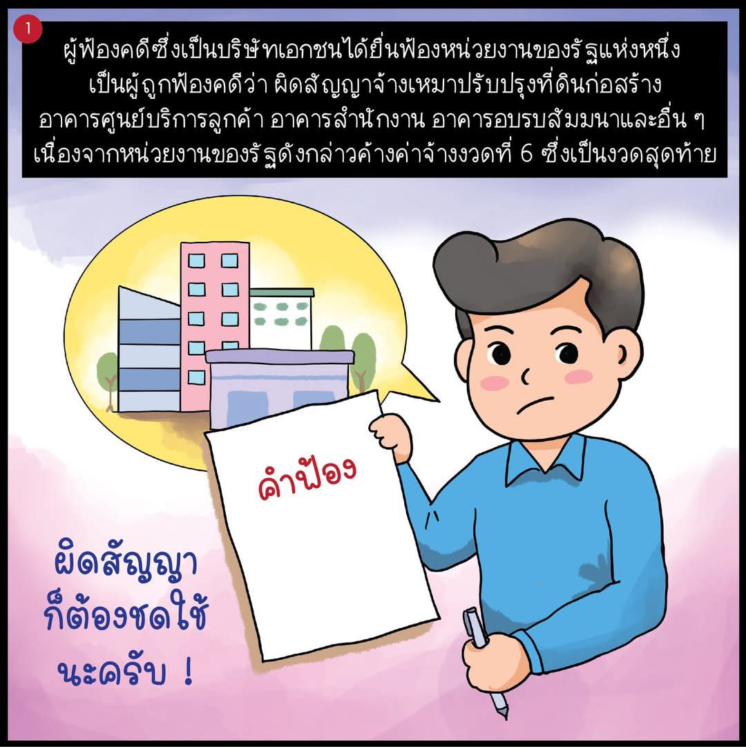 การ์ตูน 4 ช่อง Vol.83 หน่วยงานผิดสัญญาจ้างเหมาปรับปรุงที่ดิน ก่อสร้างอาคาร ไกล่เกลี่ยข้อพิพาทในศาลน่าจะดีกว่า จริงหรือไม่?