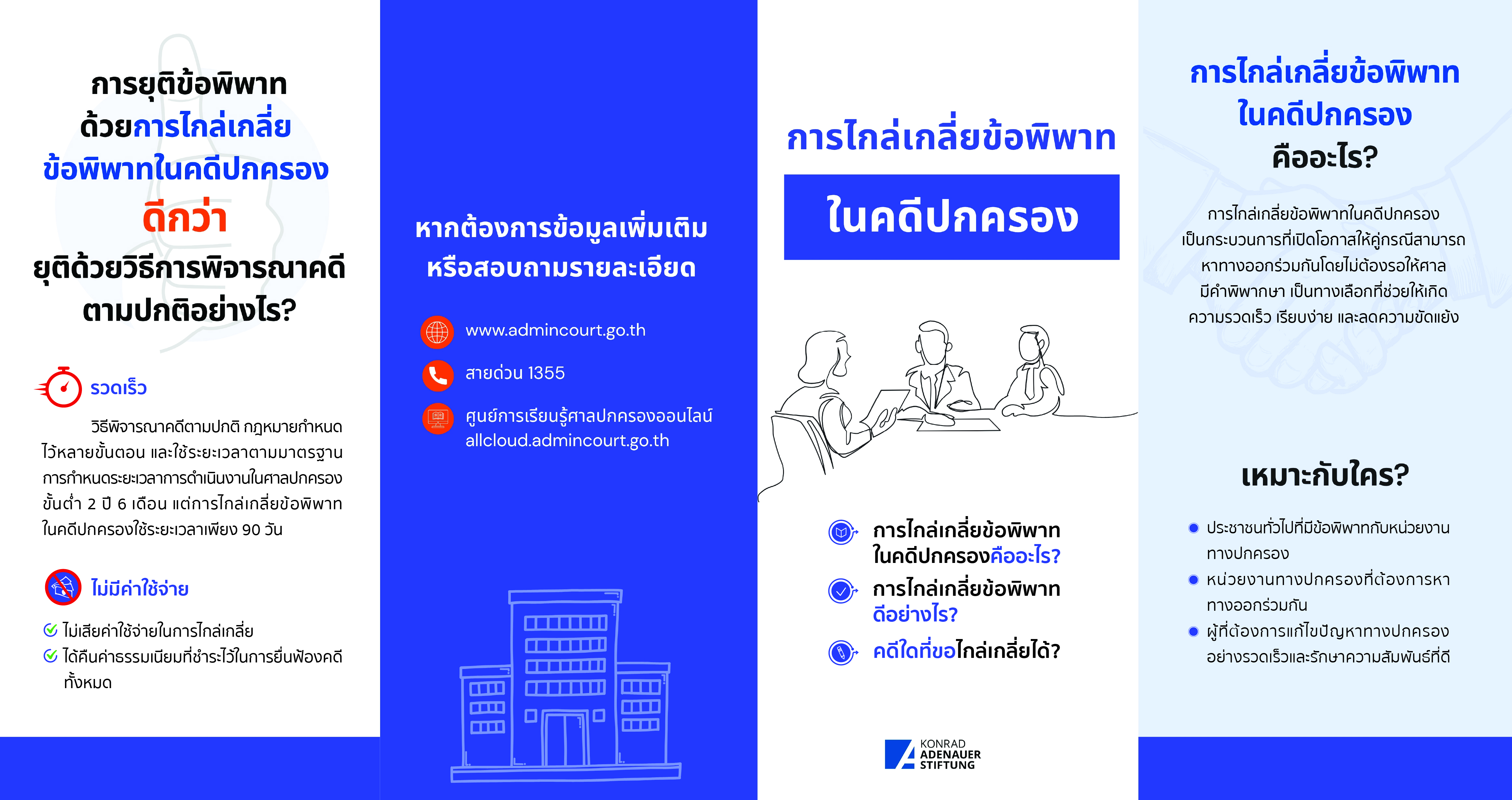 แผ่นพับ การไกล่เกลี่ยข้อพิพาทในคดีปกครอง
