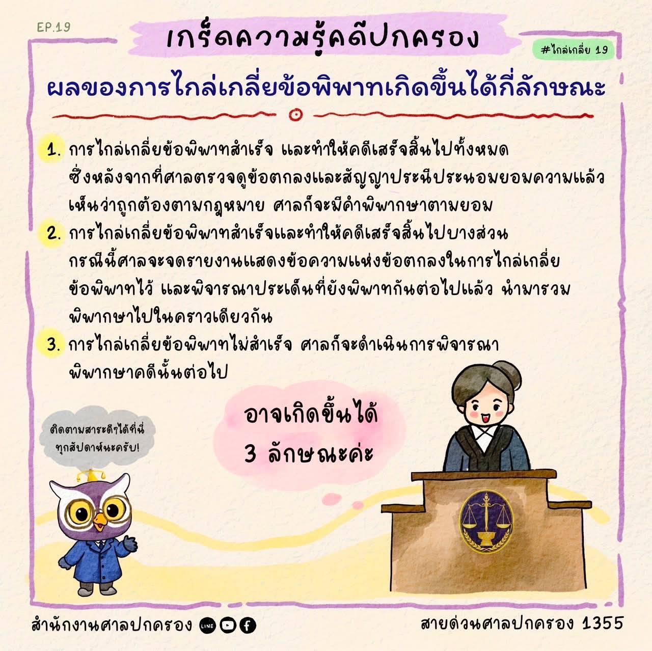 Infographic เกร็ดความรู้คดีปกครอง Ep.19 ผลของการไกล่เกลี่ยข้อพิพาทเกิดขึ้นได้กี่ลักษณะ