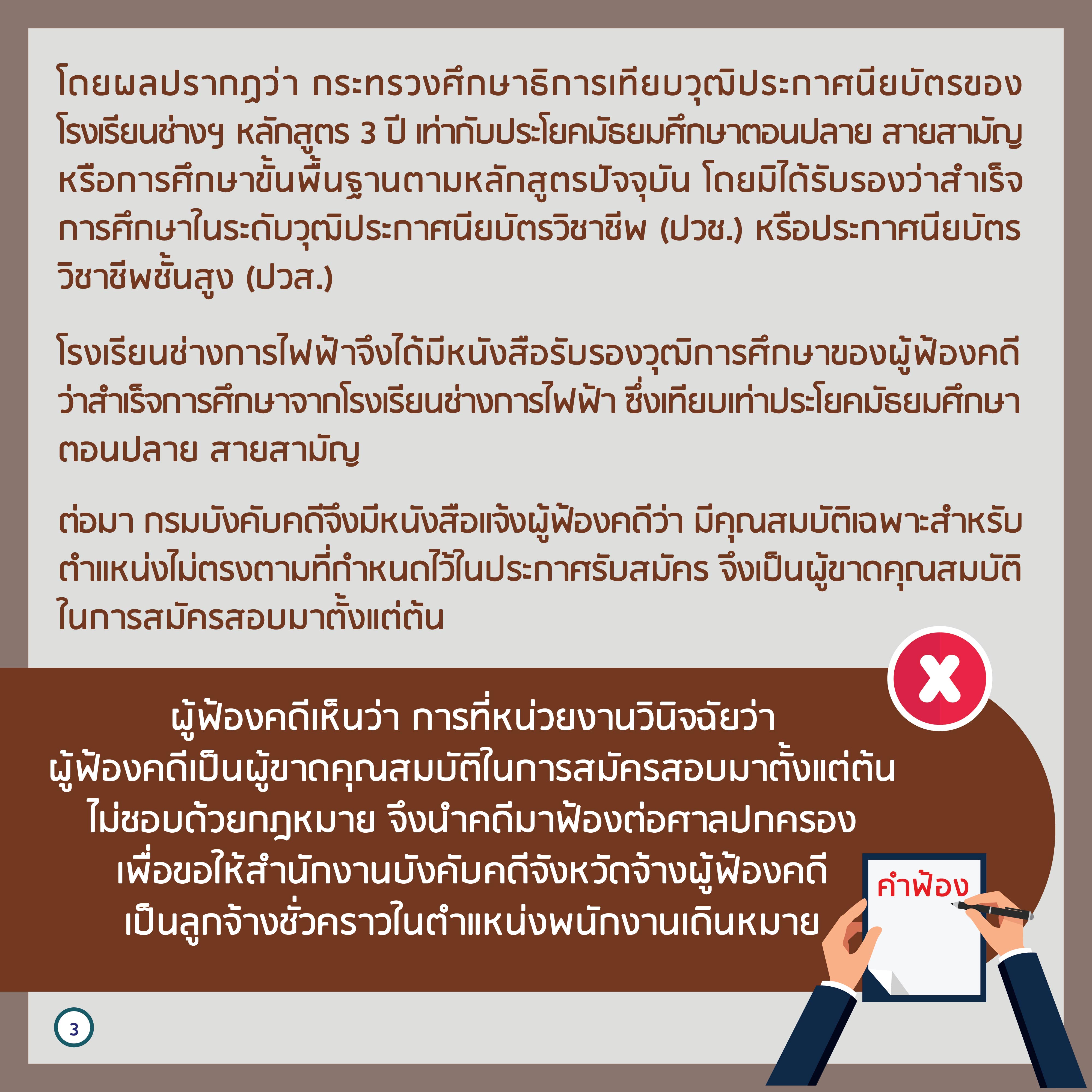 Infographic แนวคำวินิจฉัยคดีปกครอง ตอนที่ 269 ขาดคุณสมบัติ เพราะวุฒิการศึกษาไม่ตรงกับคุณสมบัติการจ้าง