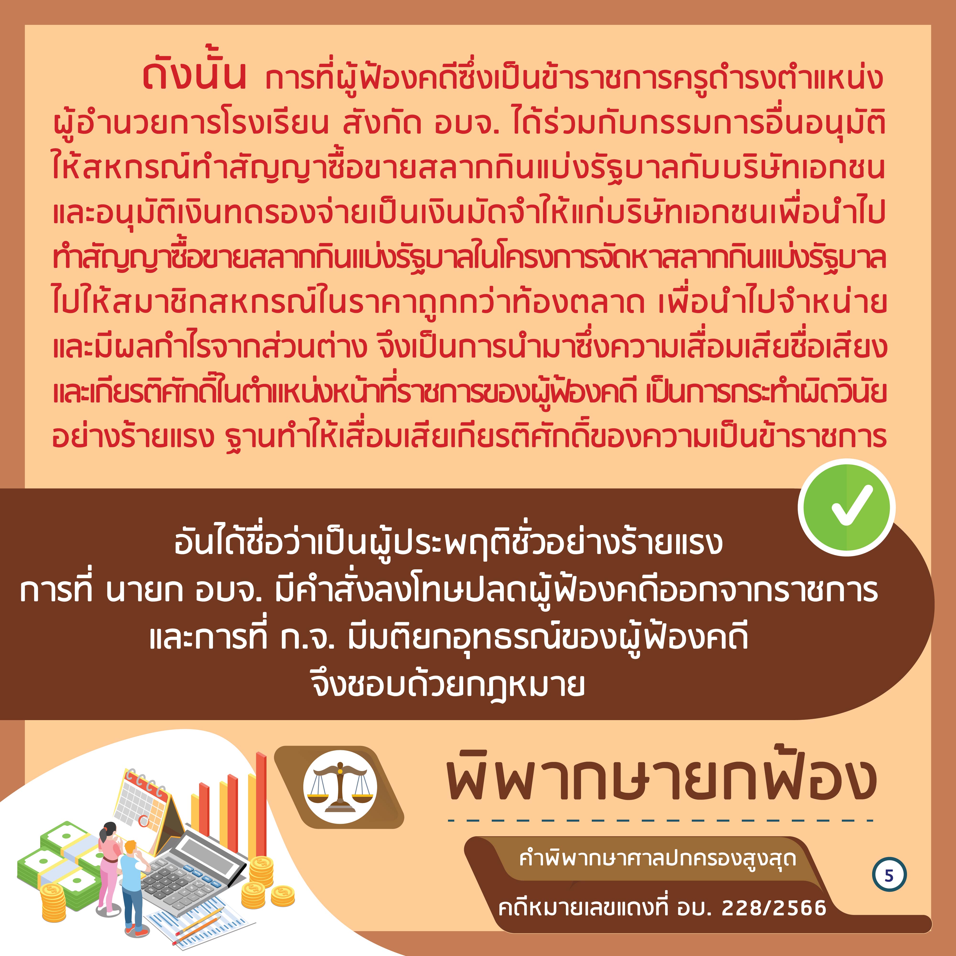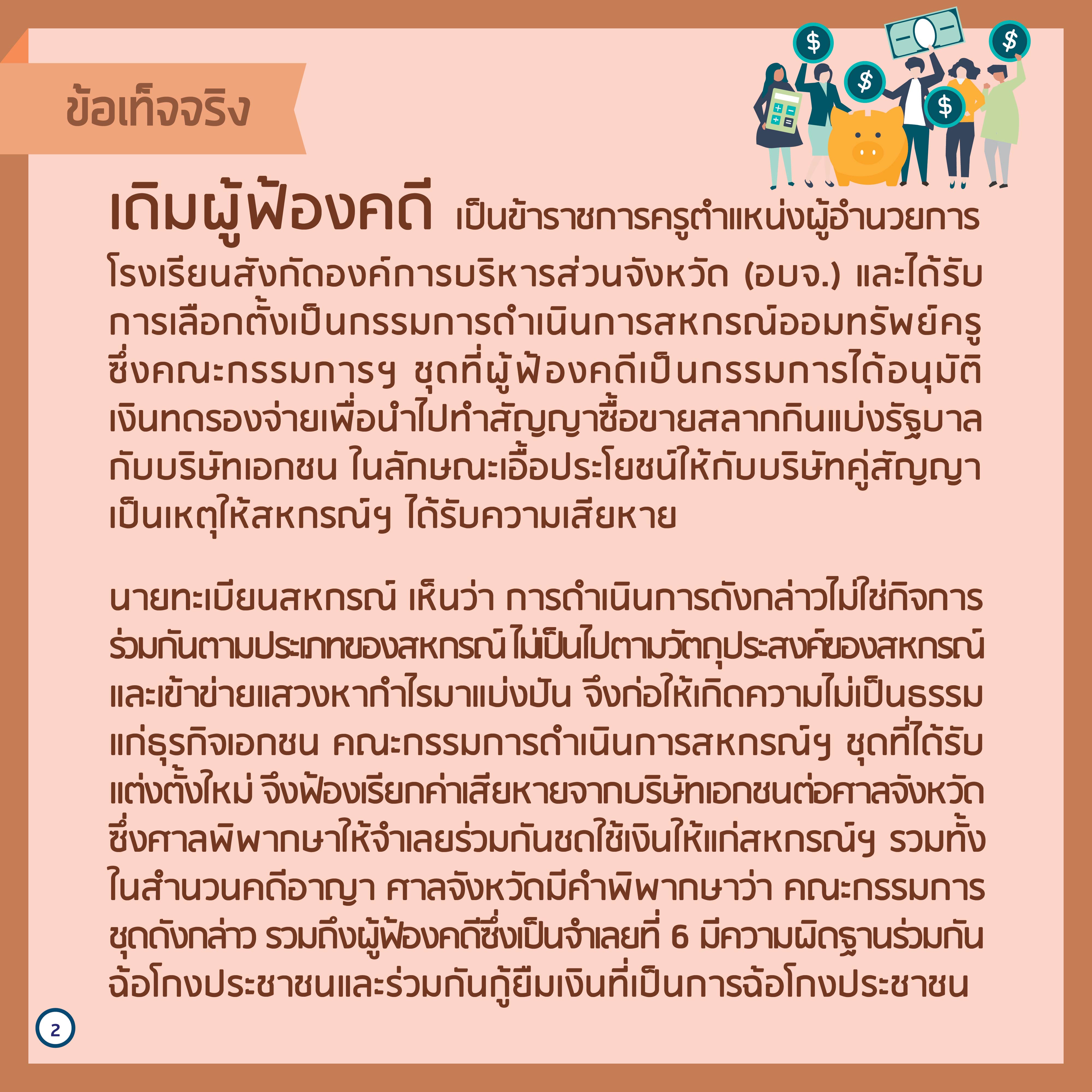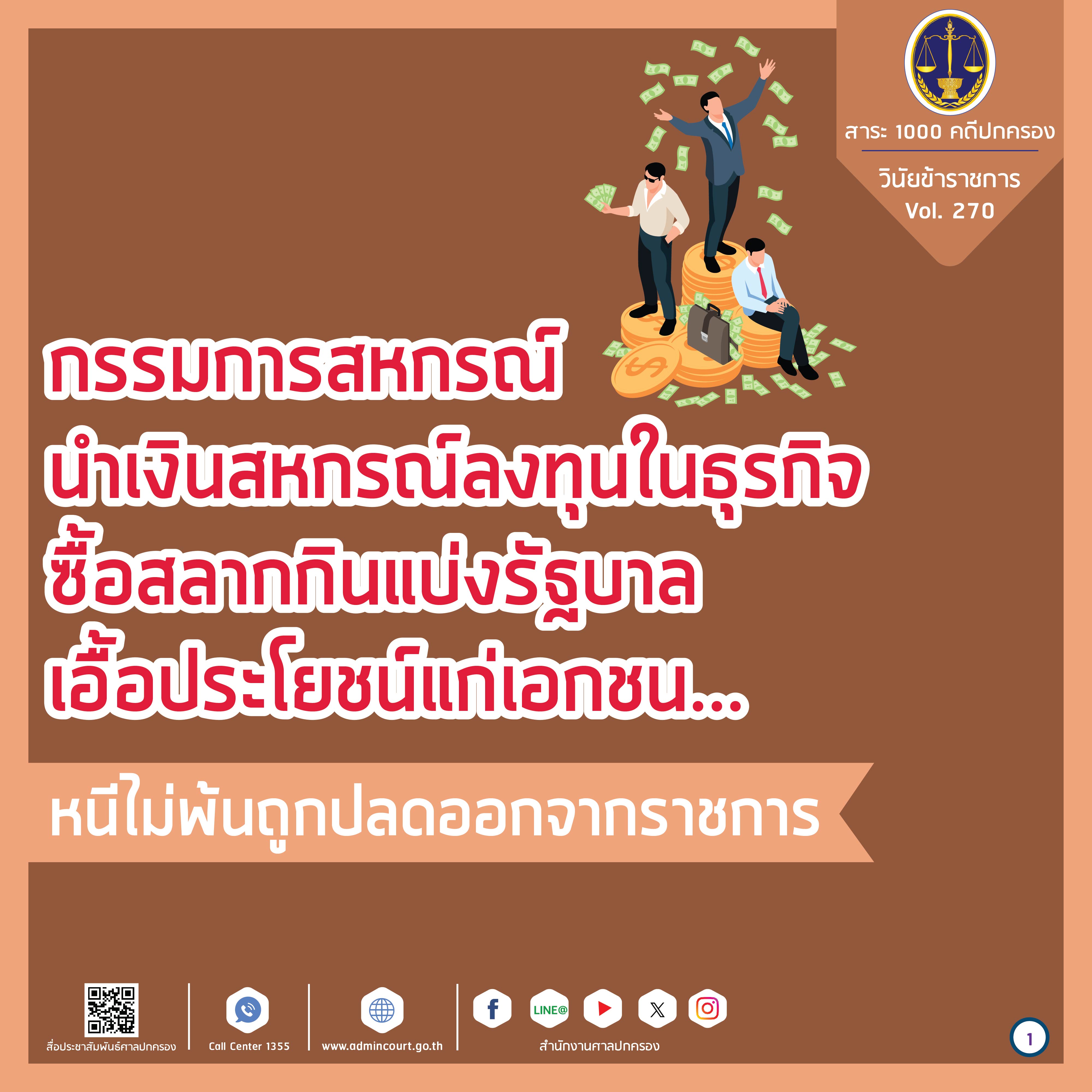 Infographic แนวคำวินิจฉัยคดีปกครอง ตอนที่ 270 กรรมการสหกรณ์นำเงินสหกรณ์ลงทุนในธุรกิจ ซื้อสลากกินแบ่งรัฐบาลเอิ้อประโยชน์แก่เอกชน หนีไม่พ้นถูกปลดออกจากราชการ
